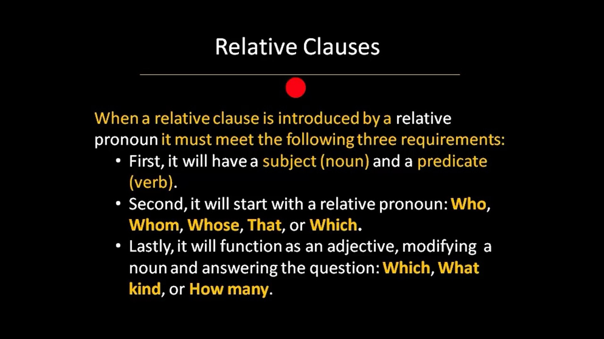 This is the house which jack built. We have a youth club in town where i often meet my friends. A relative clause is a sentence describing a noun, however, it cannot be used separately. Relative pronouns introduce relative clauses, which are a type of dependent clause. It has a subject and verb, but can't stand alone as a sentence.